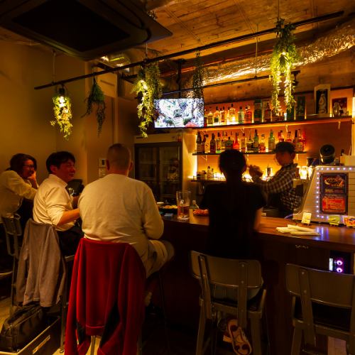 カウンター席18席あり。お一人様でも、お友達とゆったり飲みたい時に最適◎中州ではちょっと珍しい雰囲気のお店です!ビリヤード、ダーツ、カラオケが楽しめます。日頃の息抜きや非日常を体感したい方はぜひ遊びに来てください。カーニバルのような雰囲気が楽しめます。
